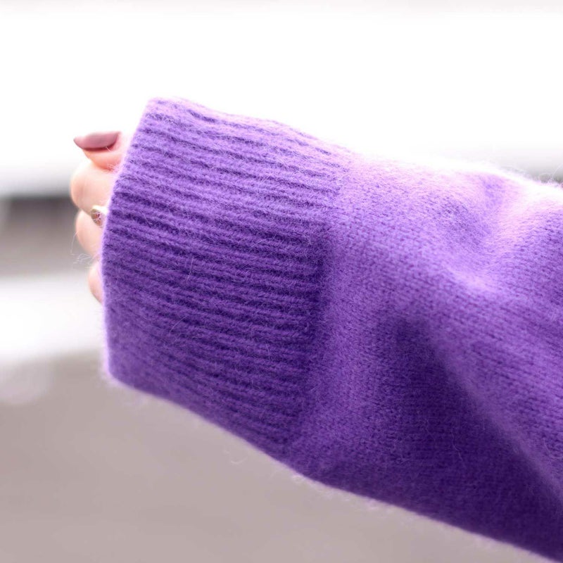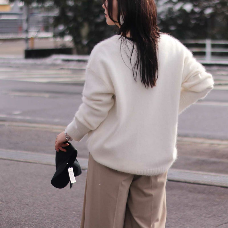 ラクーン混ならではのふんわりとした柔らかさで、チクチク感がなく、素肌に触れても心地よい着用感が魅力です。