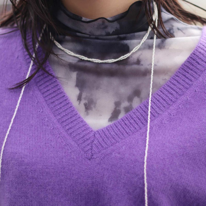 前後どちらでも着用でき、VネックとUネックの2つの表情を楽しめる万能デザインです。