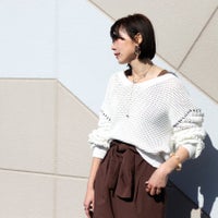 肩のラインを少し落として、ゆったり着用すると女性らしさと抜け感がUPします。