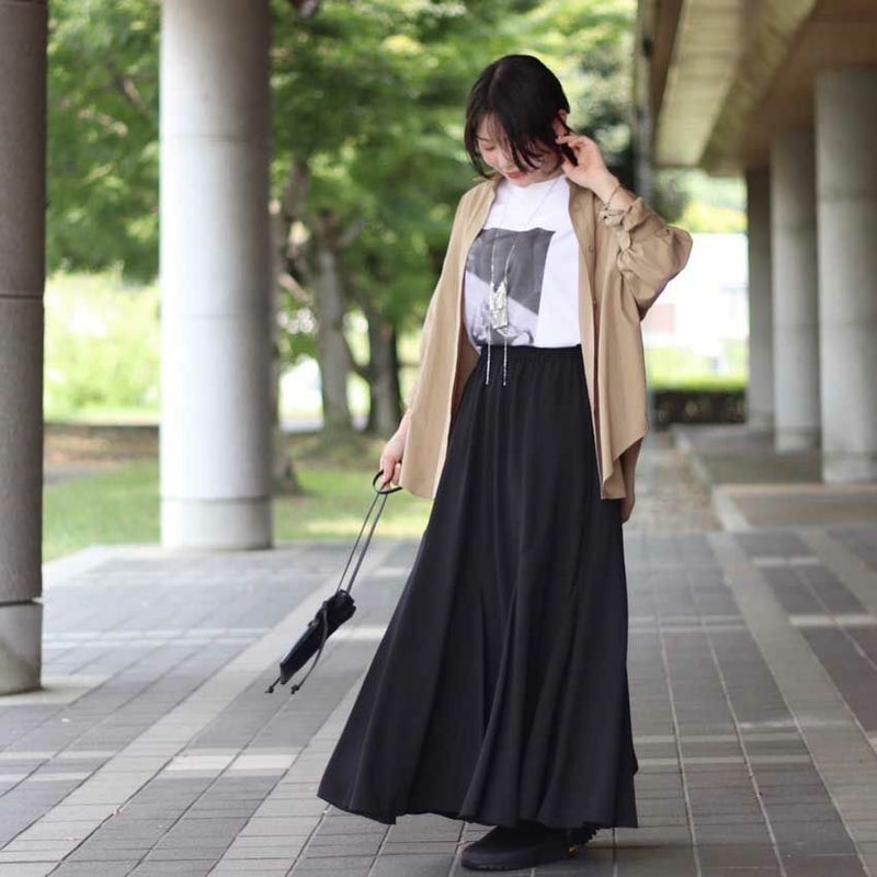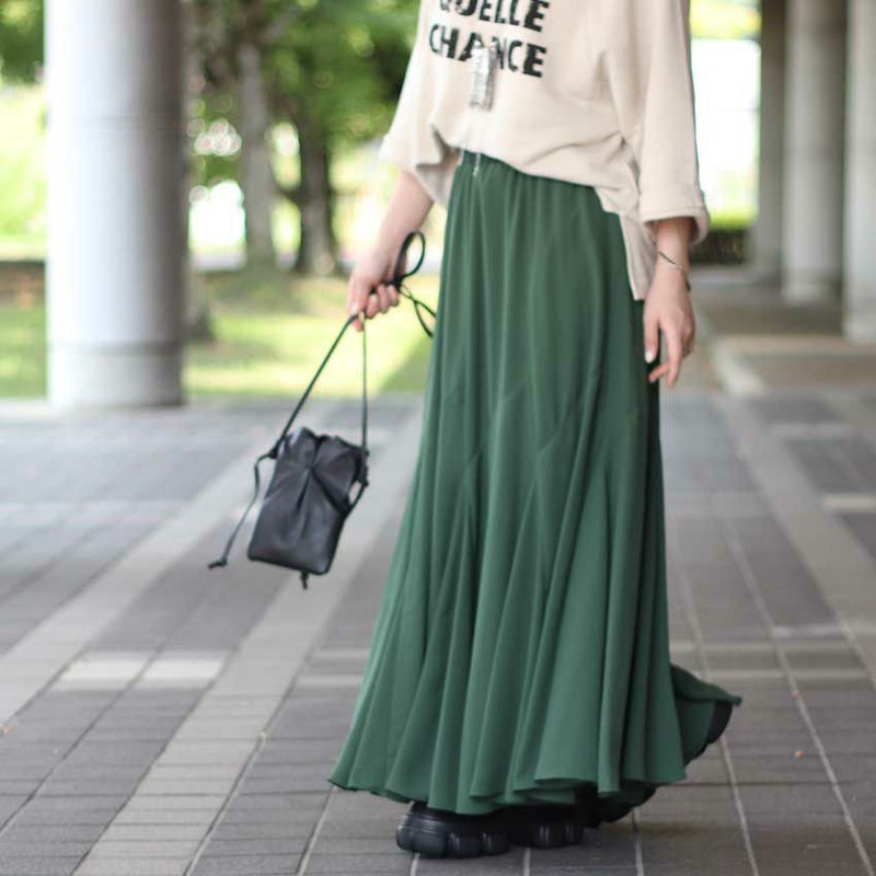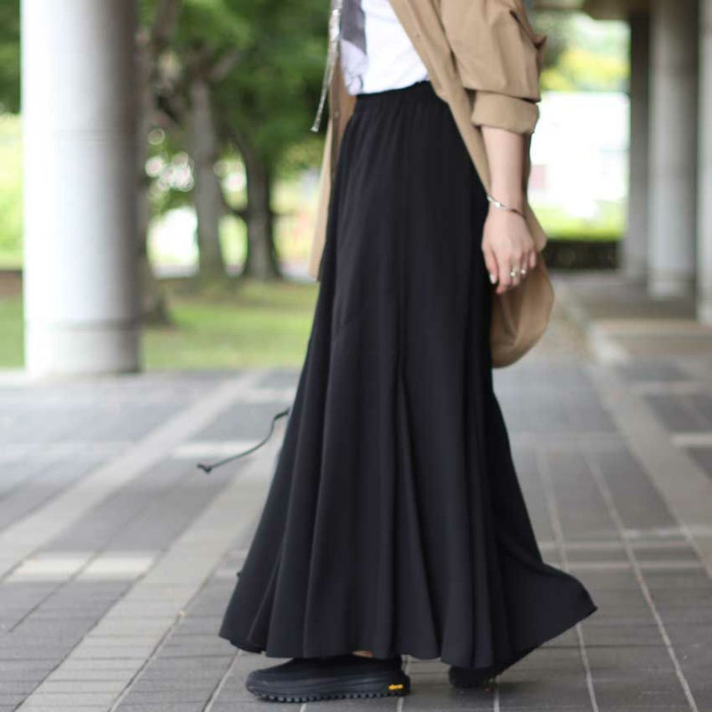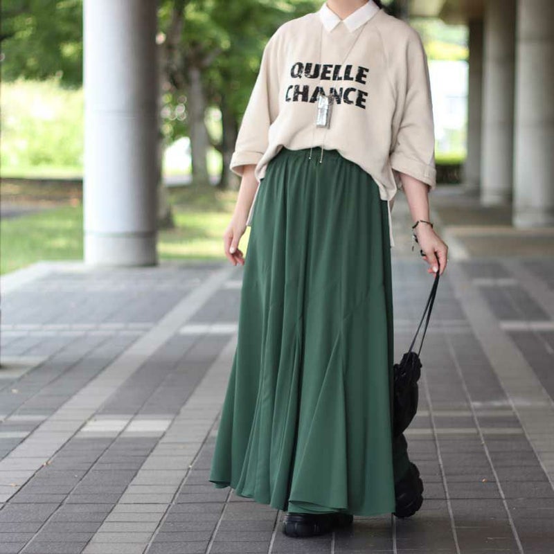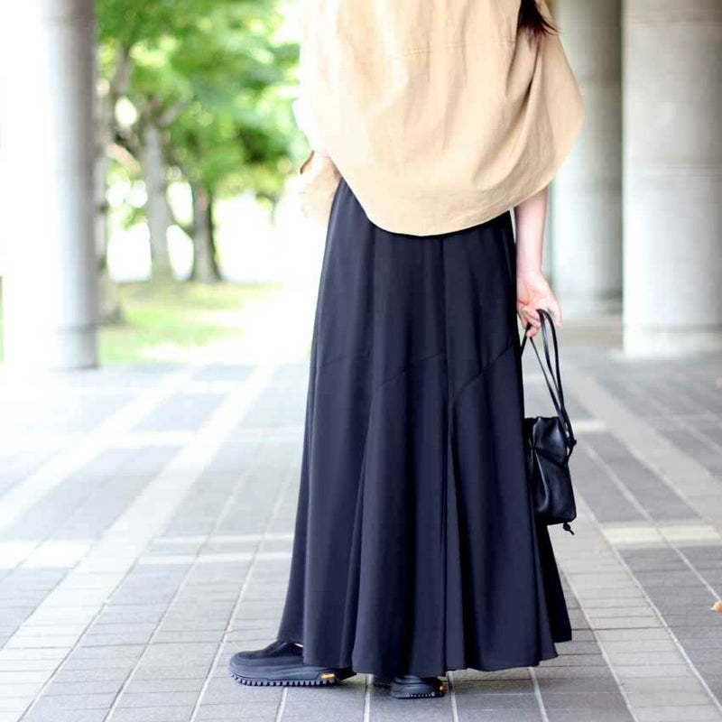 カジュアルにもキレイ目にも着こなせる万能なスカートです。