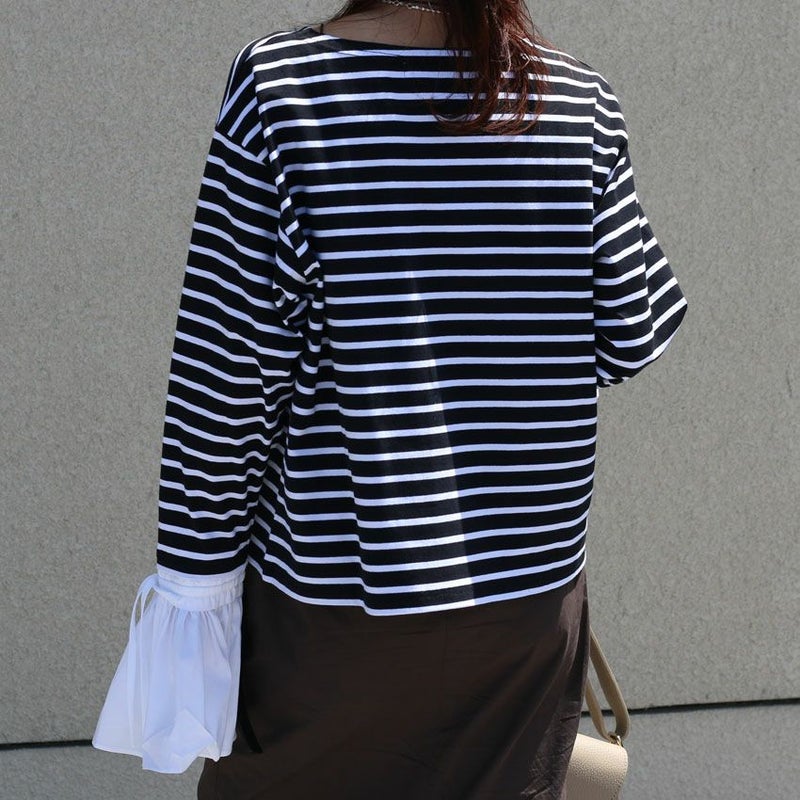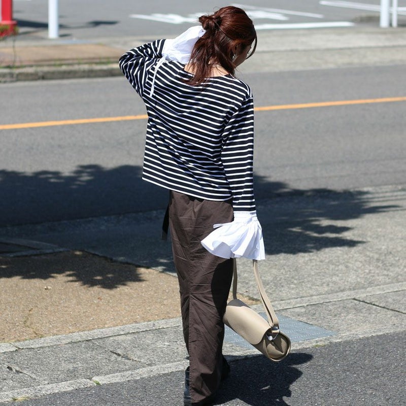 ベーシックなボーダーを、ちょっと特別にアップデートした「Mewl/ミュール」のシャツスリーブボーダー。