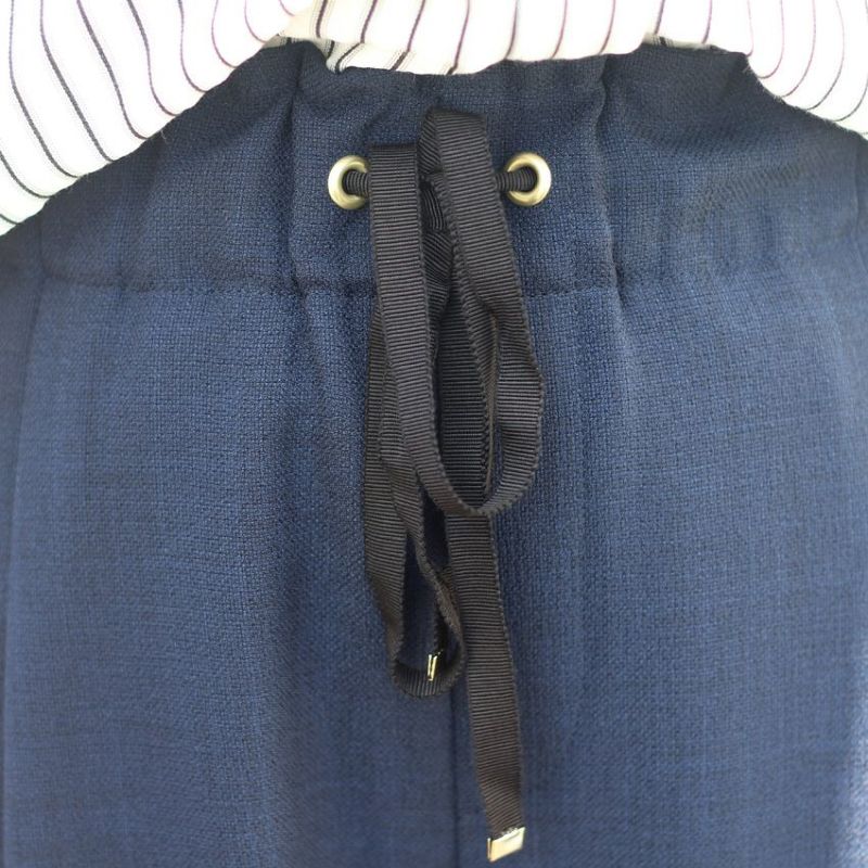 適度な落ち感と、動くたびに出来るドレープ感が上品なパンツです。