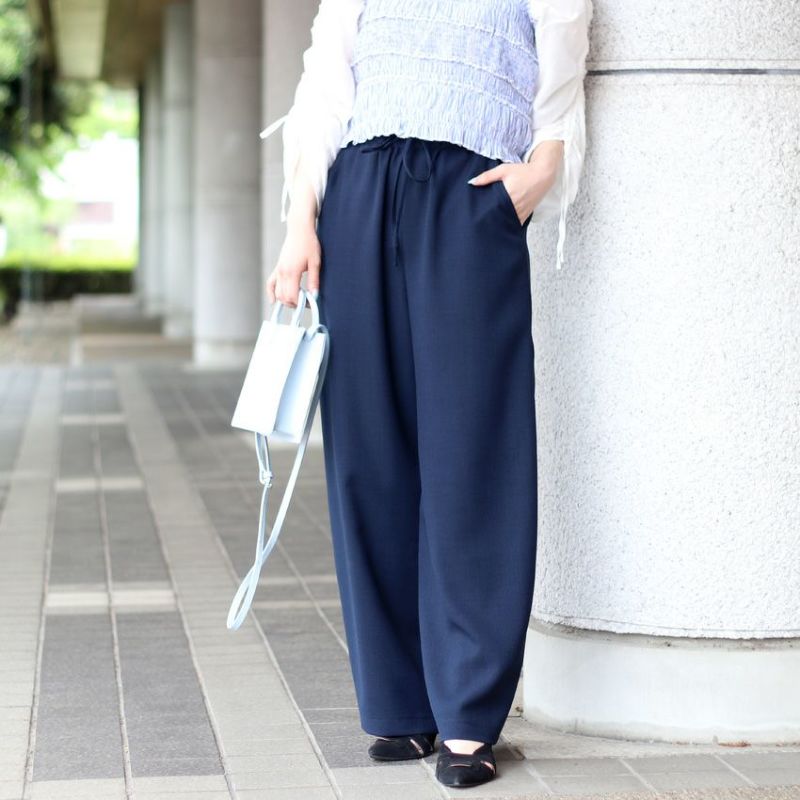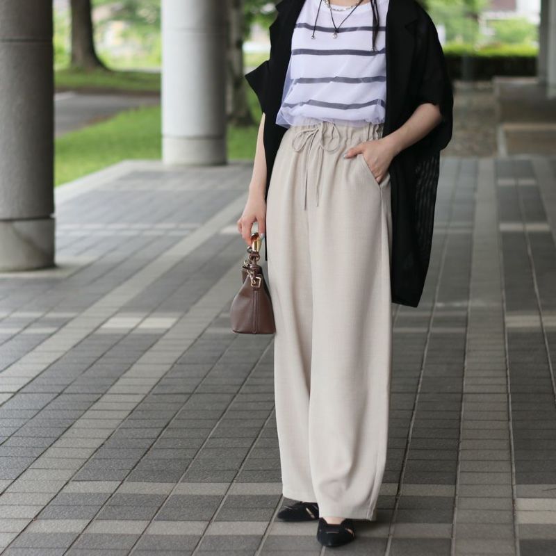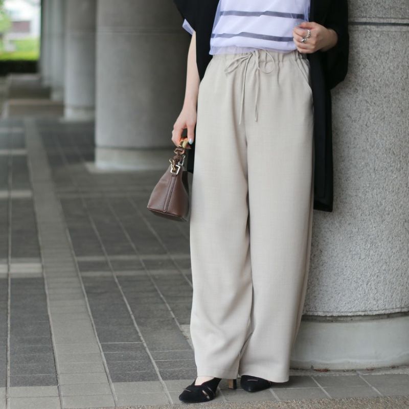 リサイクル原料を使用した環境にも肌にも優しい、夏の新定番リネンライクカーブパンツ。