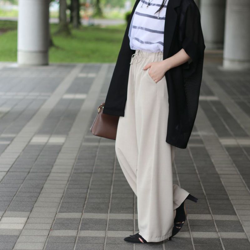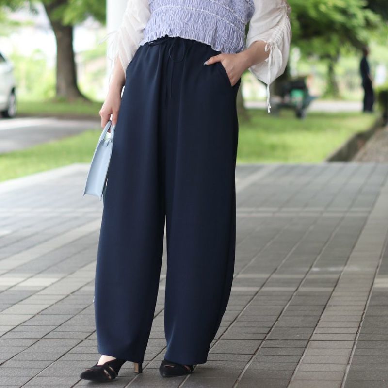 ウエストは総ゴム仕様で、長時間の着用でもストレスフリー。