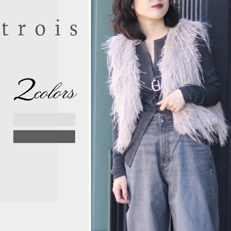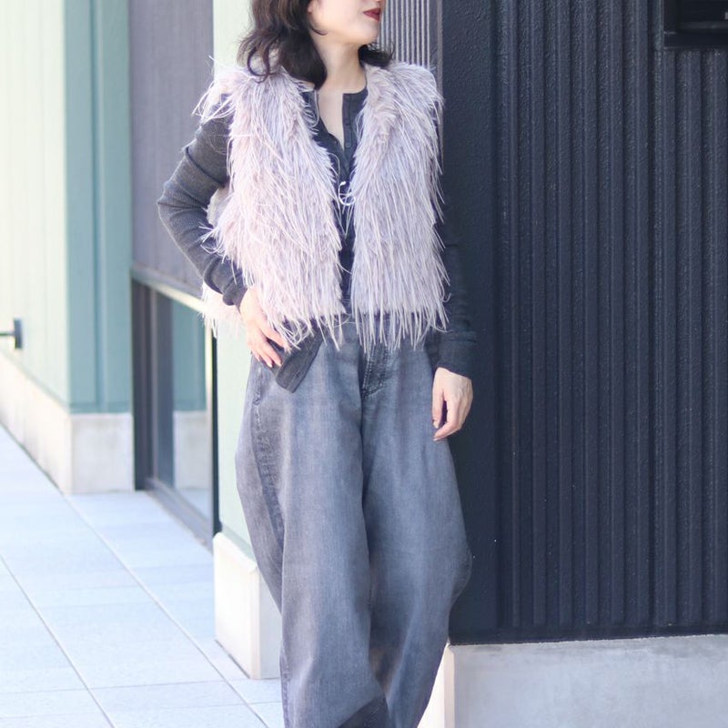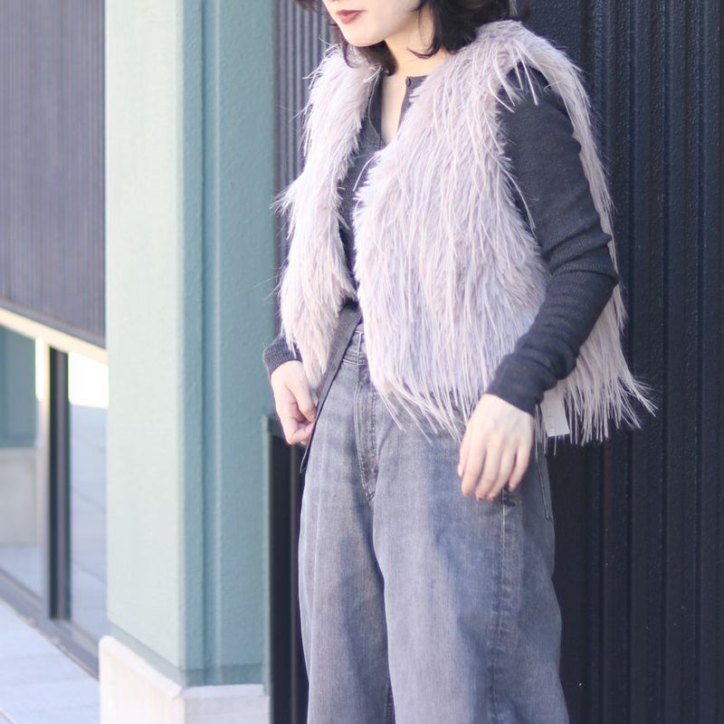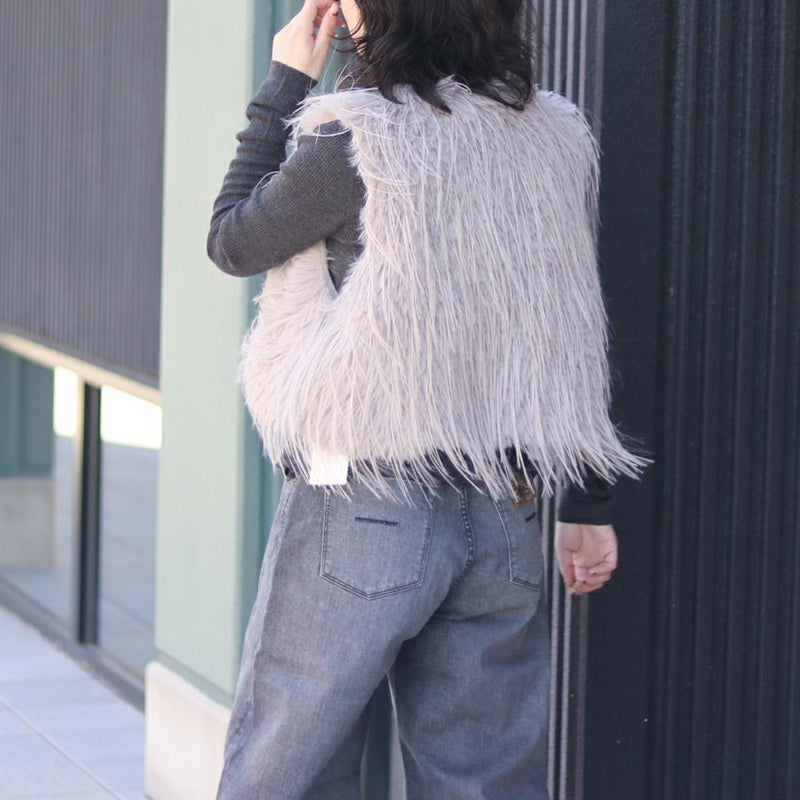 毛足の長いマットな質感が魅力のファーニットベスト。