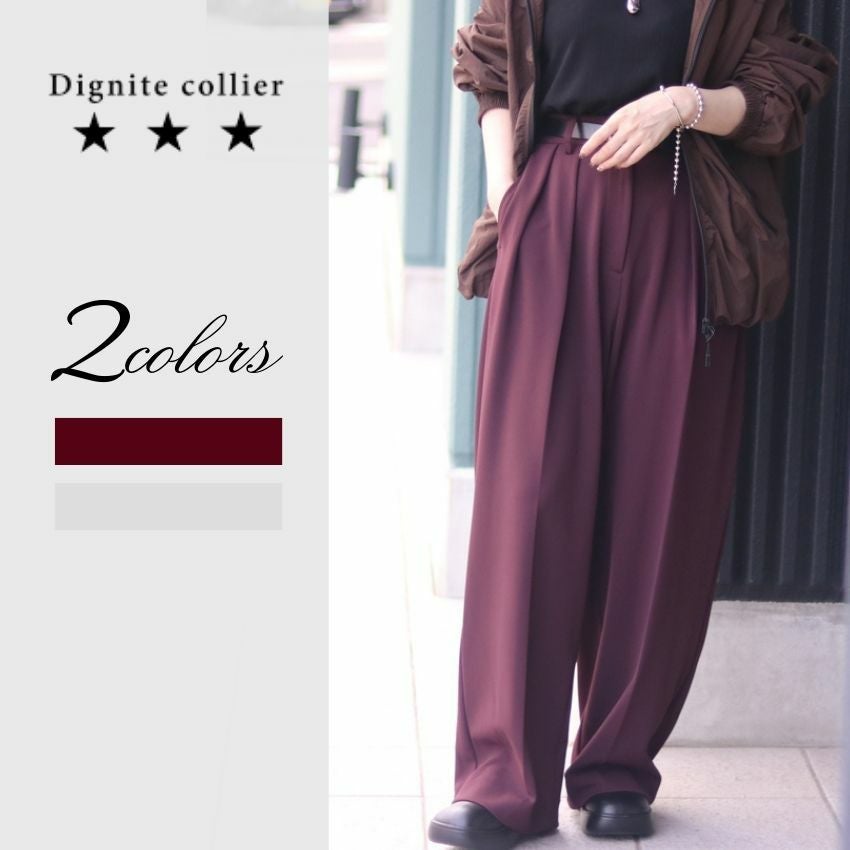 Dignite Collier/ディニテコリエ タックワイドパンツ TK-80256127 セミワイド とろみ 落ち感 スラックス オケージョン