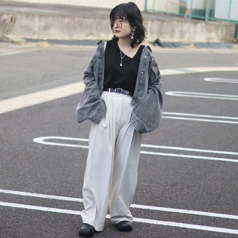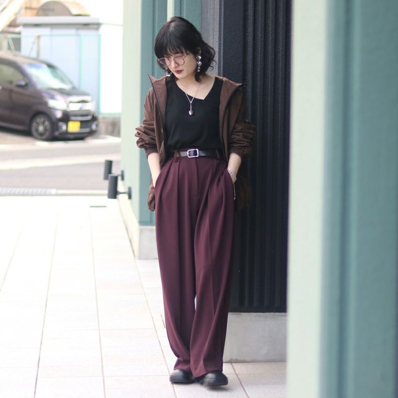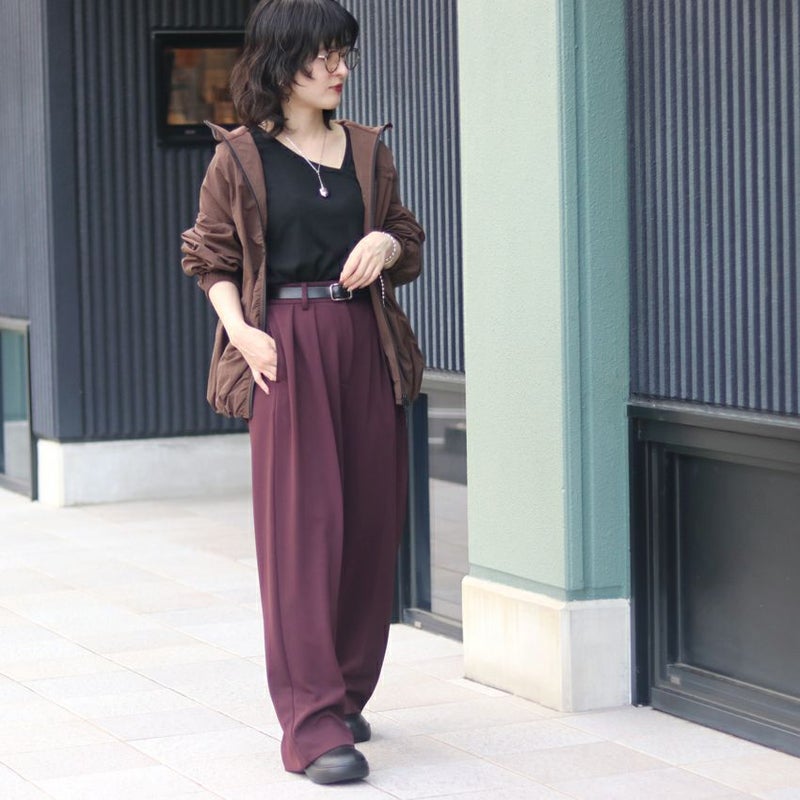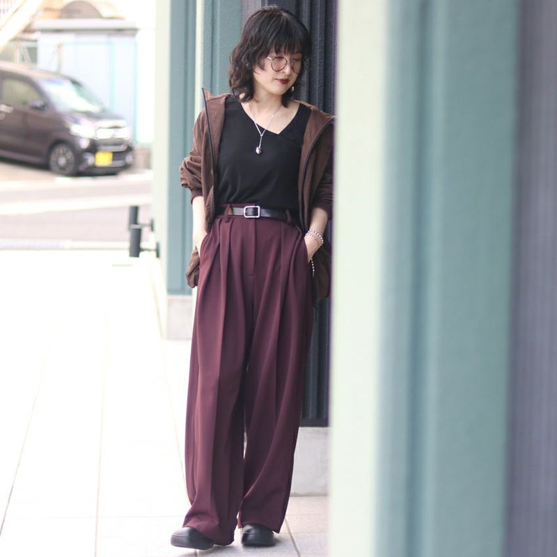セミワイドのシルエットは、小柄な方にもバランス良く馴染み、すっきりとした印象に。