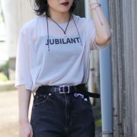 ほんのり透け感のあるシアー素材にロゴが施されたトップスで、カジュアルさを程よく抑えつつも、ロゴTの抜け感はしっかりとキープ。