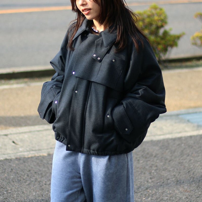 洗練されたシルエットと存在感のあるフロントディテールが魅力のブルゾン。