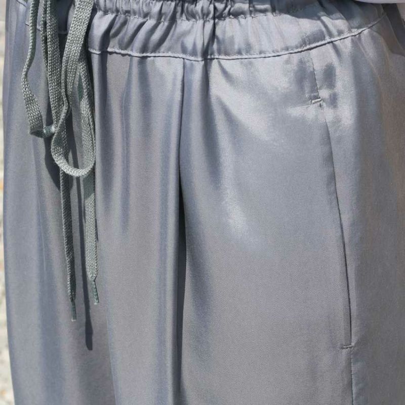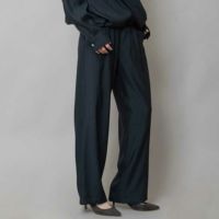 トロミと光沢のあるキュプラツイル素材でキレイ目な印象に仕上げた定番型イージーパンツ