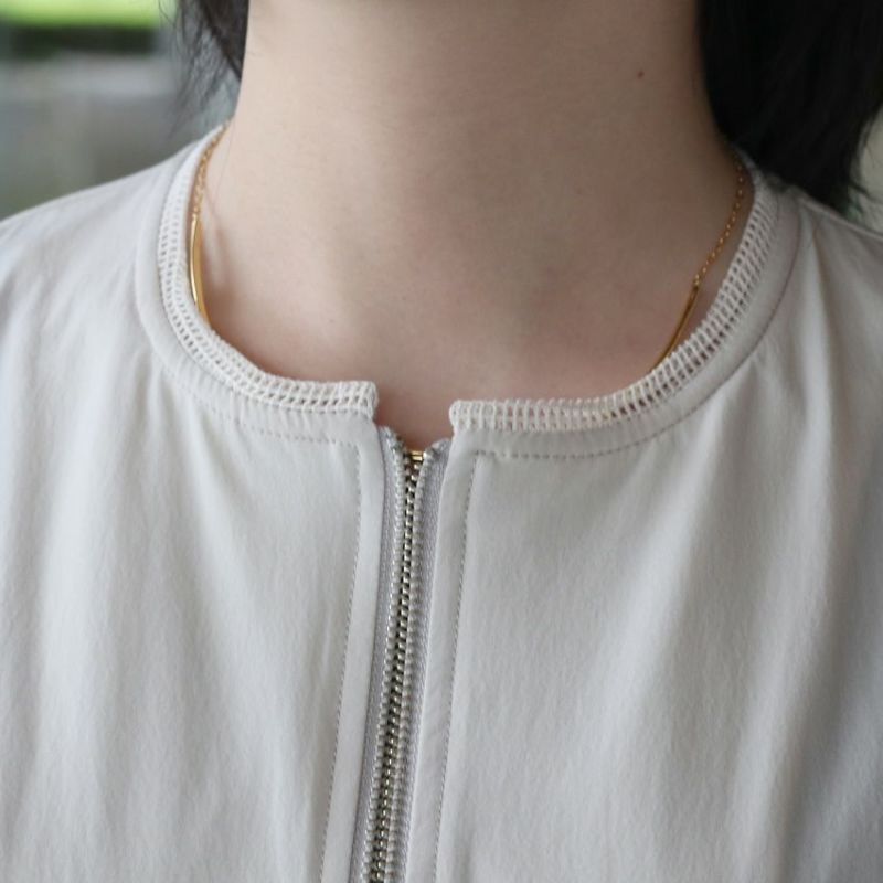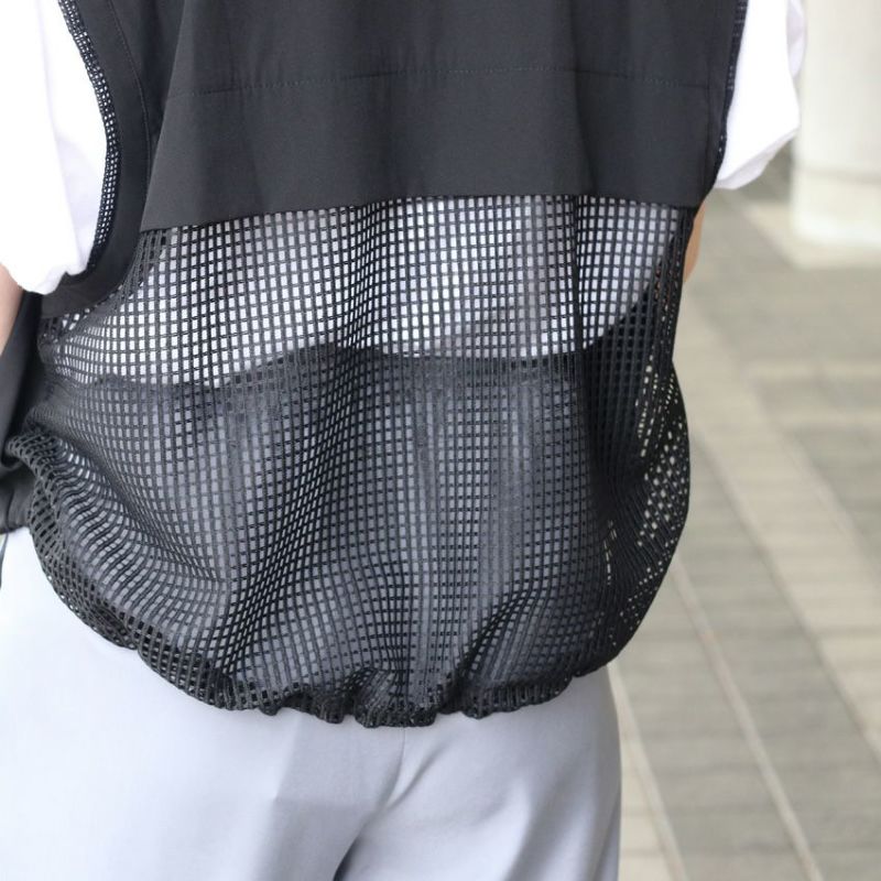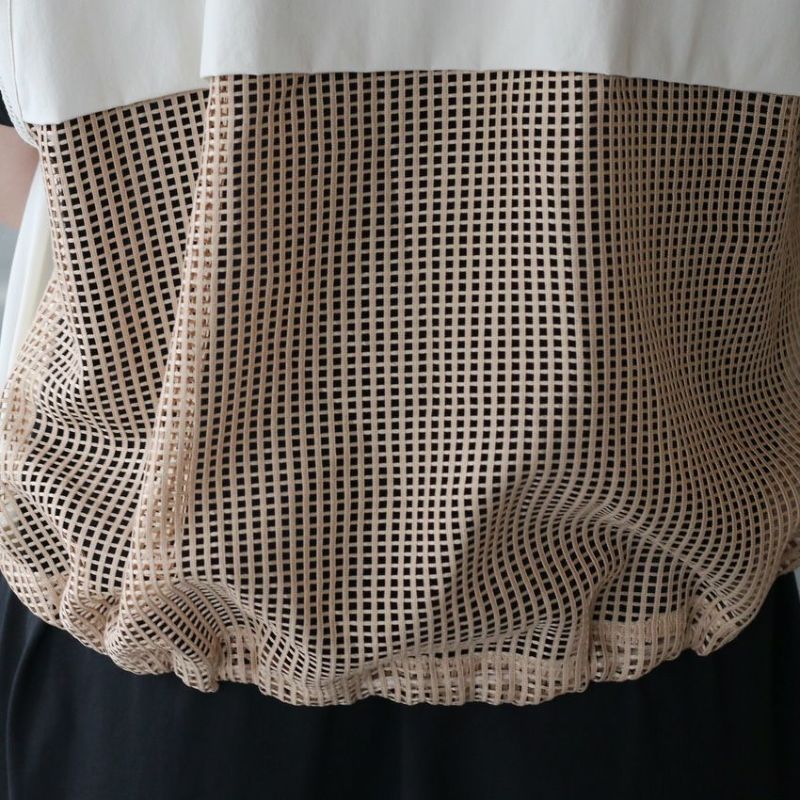 首元、脇口、背面の下側をトレンドのメッシュ素材に切り替えたデザインは、カジュアルさと清涼感のある印象を与えてくれます。