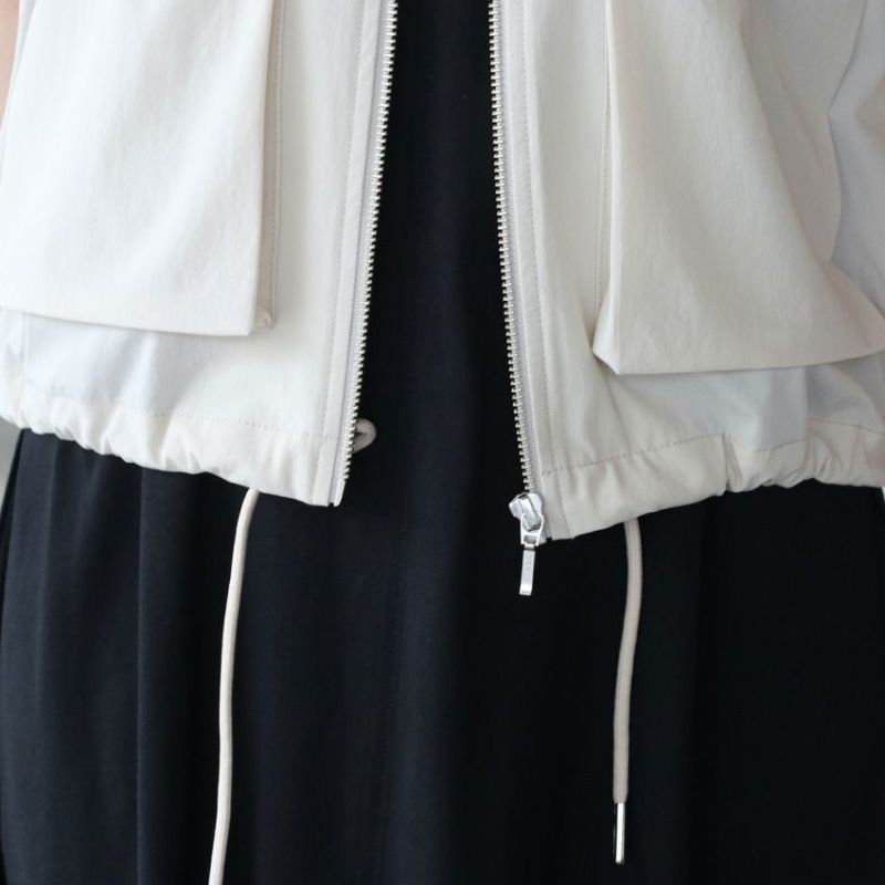 裾には、ヒモを施してあるのでギャザーを寄せて着用してもお洒落に仕上がります。