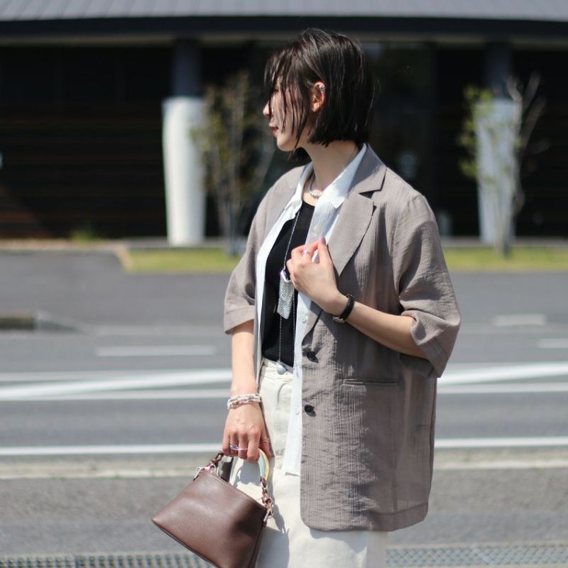 シャツのようにサラッと気軽に着れる5分袖のテーラードジャケット。