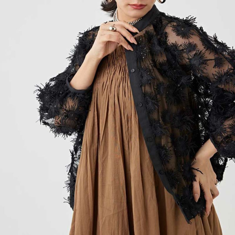 トップスとしてはもちろん、タンクトップなどの上に羽織っても可愛い一枚です。
