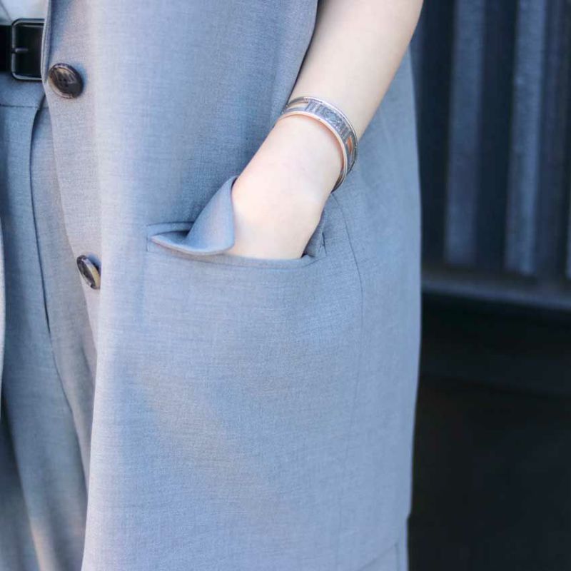 肩パットを入れたテーラードデザインでマニッシュに仕上げました。