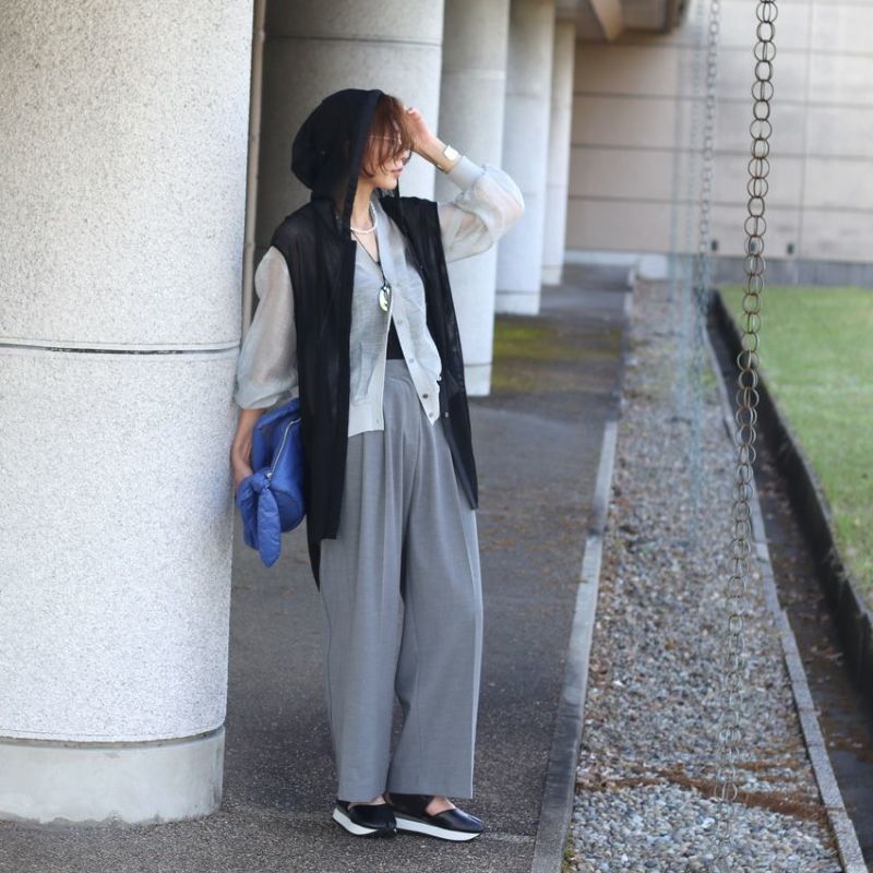 通気性のよい素材で、真夏の外出も快適にお洒落を楽しめる1着となっています。