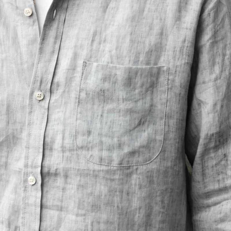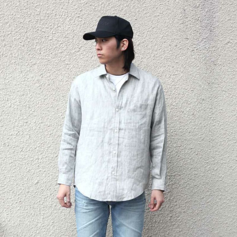 麻素材ですが、バイオウォッシュが施されているため、特有のチクチクや毛羽立ち、肌触りの硬さなどは皆無。とても柔らかく仕上がっています。