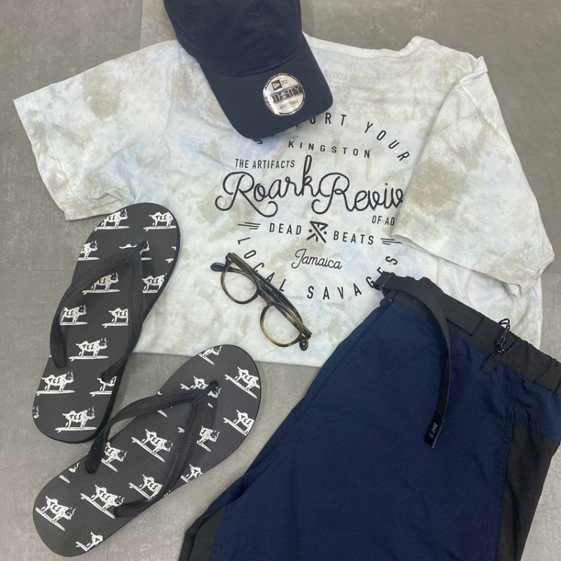 また、人気のフレブルを総柄でプリント、ダークトーンのカラーリングで足元を引き締めてくれます。