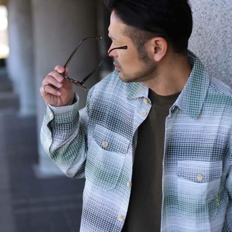 フロントの両側にポケットをあしらったCPOシャツのようなディテール、裾がフラットになったデザインは、ジャケットライクな仕立てになっています。
