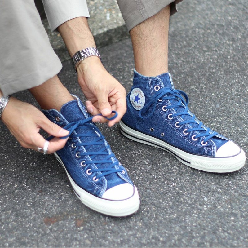 コンバースのアイコンでもあるアンクルパッチには、同色の鮮やかなブルーの星を採用し、統一感を持たせたデザインに仕上がっています。