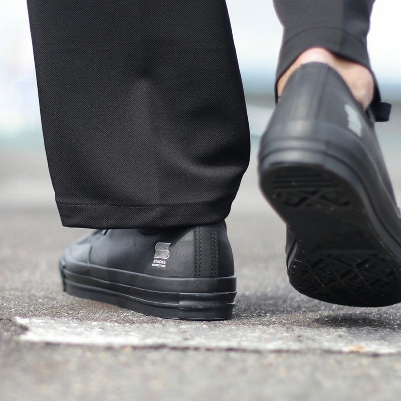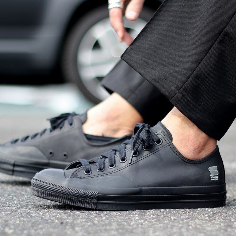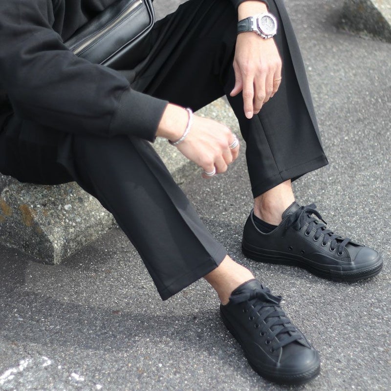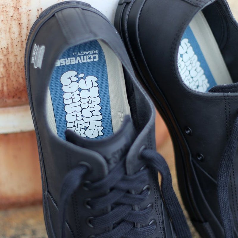 本来はヒール部分には白くコンバースのロゴデザインがプリントされていますが、ロゴもブラックでプリントしており、いい意味でコンバース感を抑えています。