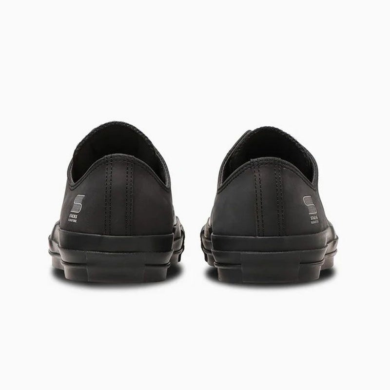 ヌバックレザーとラバーを組み合わせたオールブラックモデルは、レザー特有の重厚感が漂う高級感のある仕上がり。