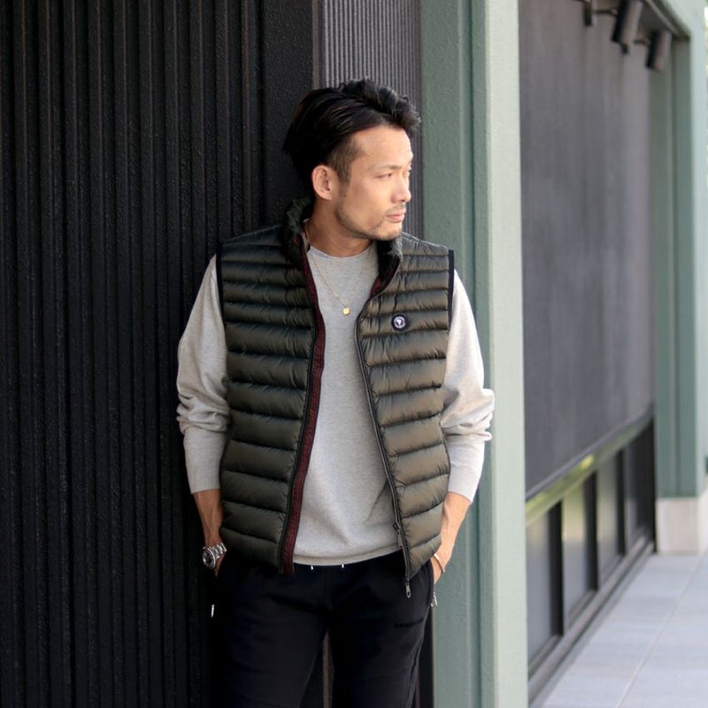 トレーナーやパーカーの上から気軽に羽織れるダウンベストは、