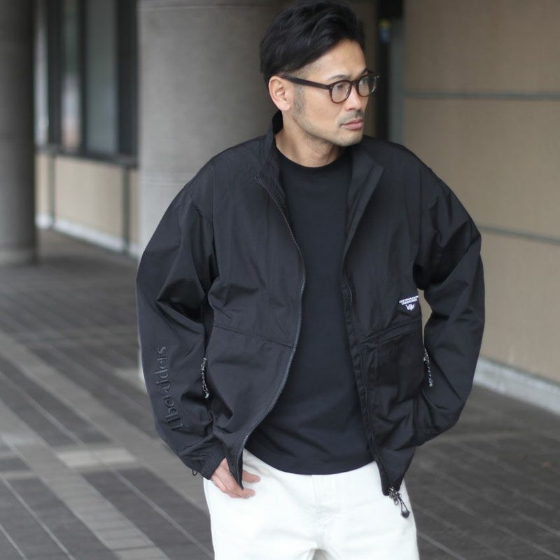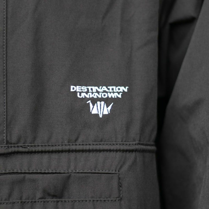 右袖にはブランドネームの立体刺繍をあしらい、左胸と右の背中にはアイコンである「ブランドネーム」と「織り鶴」の刺繍が施されており、シンプルながらもデザイン性を高めたお洒落な一着です。