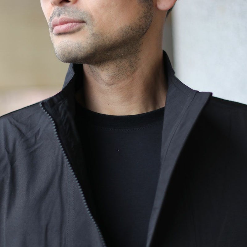 カジュアルなデザインでもスタンドネック仕様にすることで、シャープさが相まって、大人の男性がスマートに着こなしていただけるデザインに仕上げています。