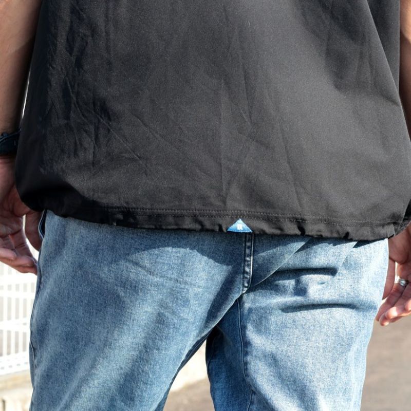 左胸にオーガナイザーポケットとシリコンワッペンを配置、裾はドローコードで絞れ、シルエットを 変化させられます。