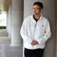 フロントには首元迄のジッパーを採用、ロゴ入りのプーラ―もポイントです。