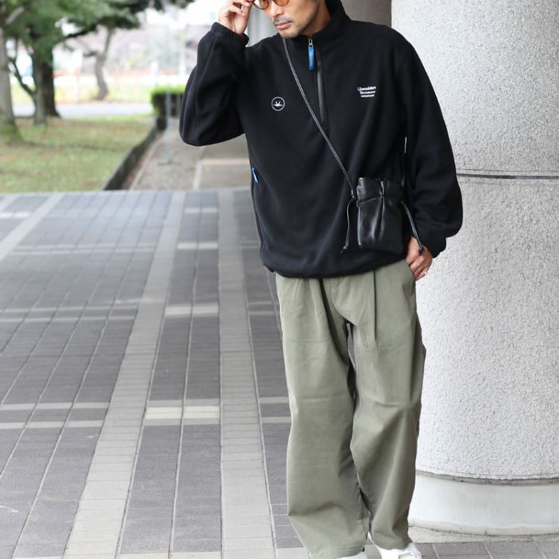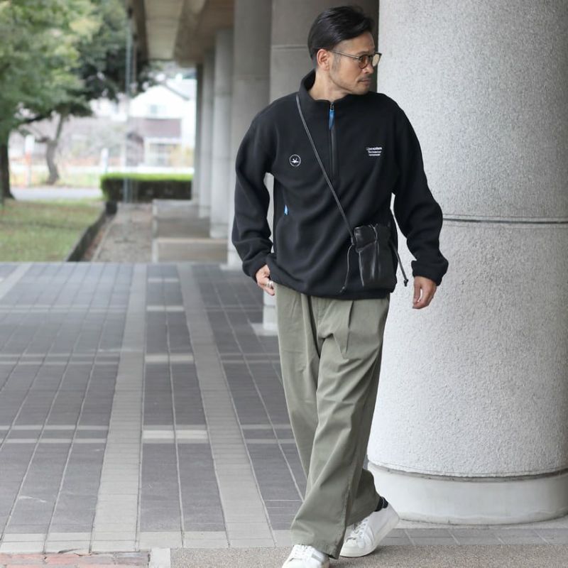 今っぽく、ワイドデニムやカーゴパンツなどと合わせるのがオススメです。