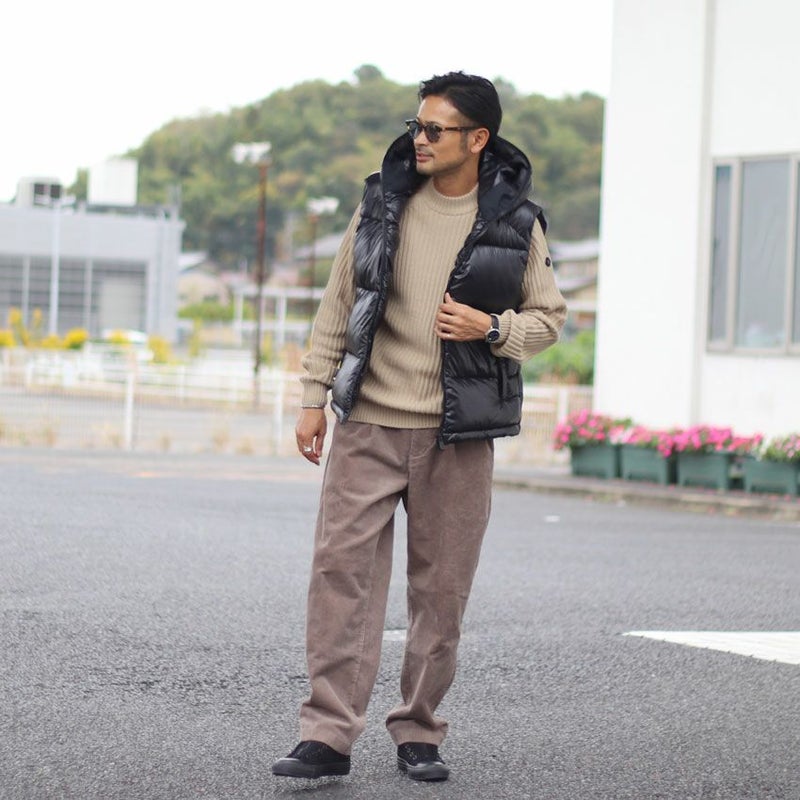 着心地はフィットしたサイジングで、ダウンベストでも熱を逃がさない作りとなっています。