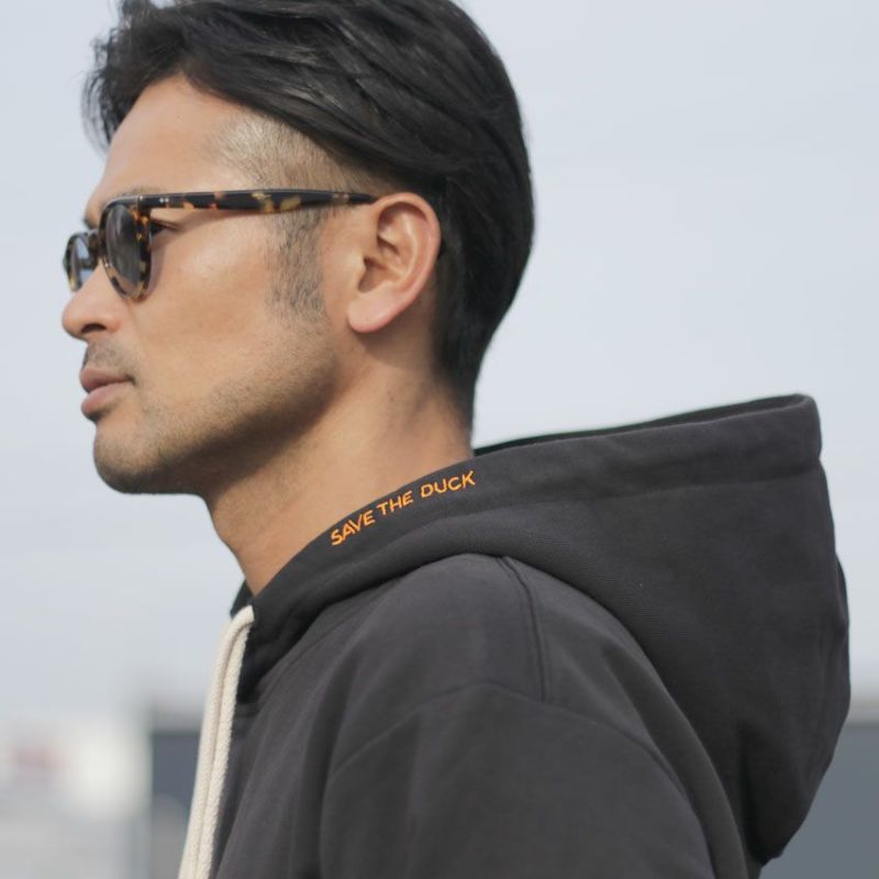 SAVE THE DUCK/セイブザダック フードロゴプルオーバーパーカー 808-21559003 スウェット イタリアブランド 刺繍 ワッペン ワンポイント