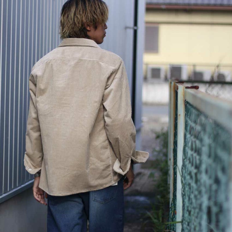肉厚の生地で寒くなれば厚手のインナーを着て活躍させることが出来る高い防寒性を誇るオーバーシャツジャケット。