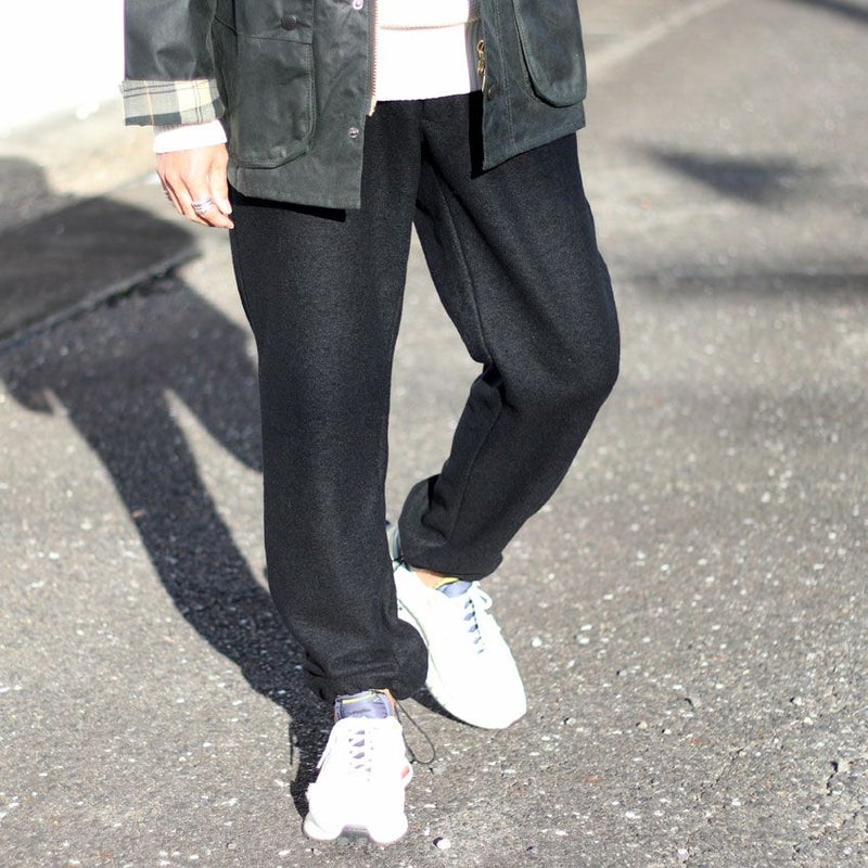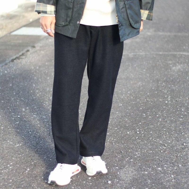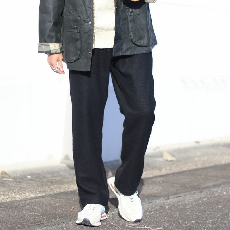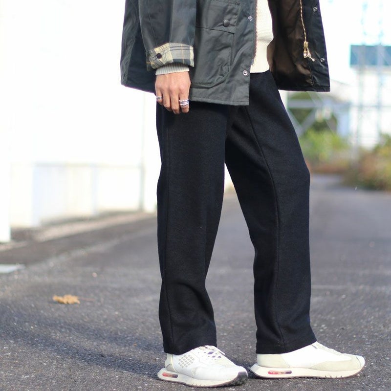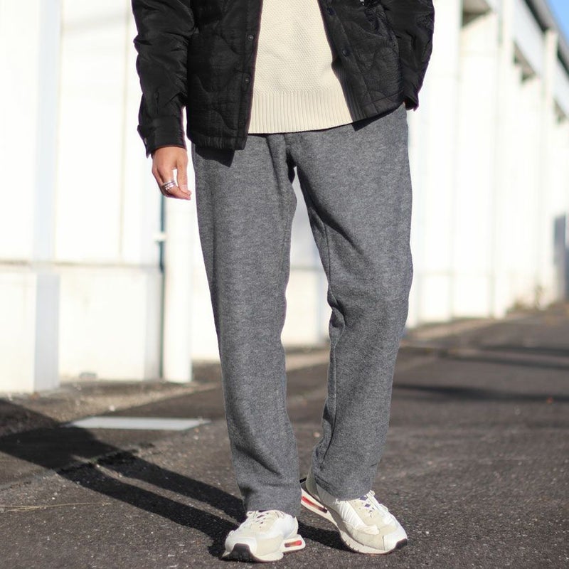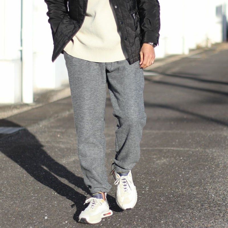 見た目にも暖かなウール、モコモコとした表情がありながらも厚すぎず、着膨れしにくくゆったりとしたテーパードシルエットとなります。