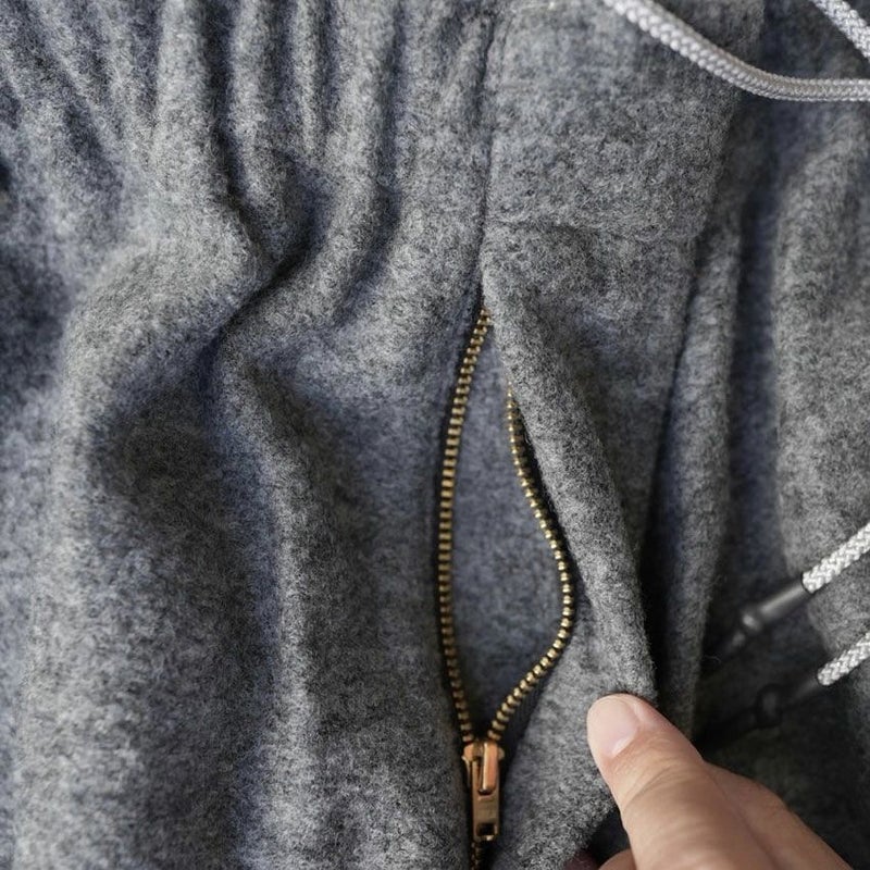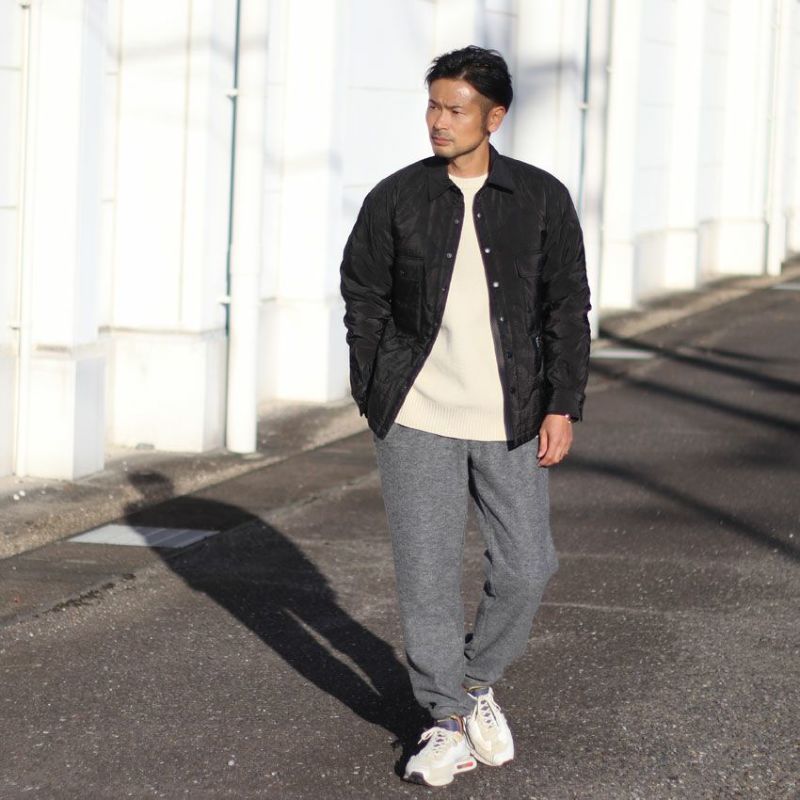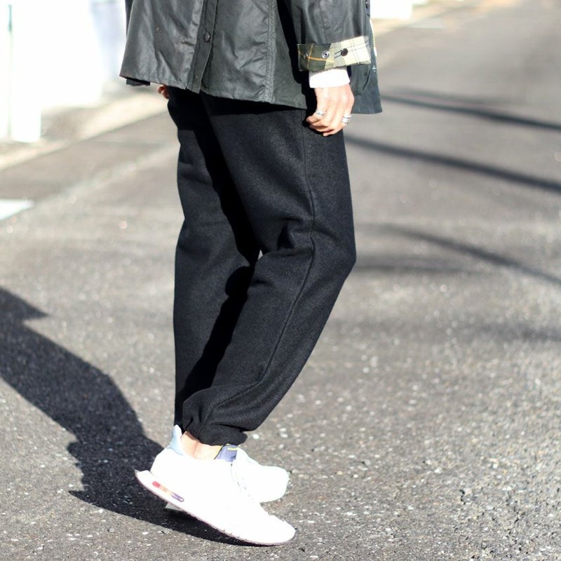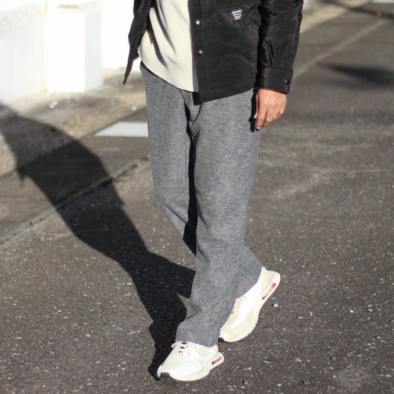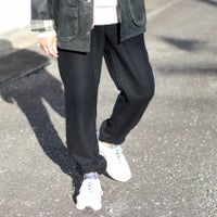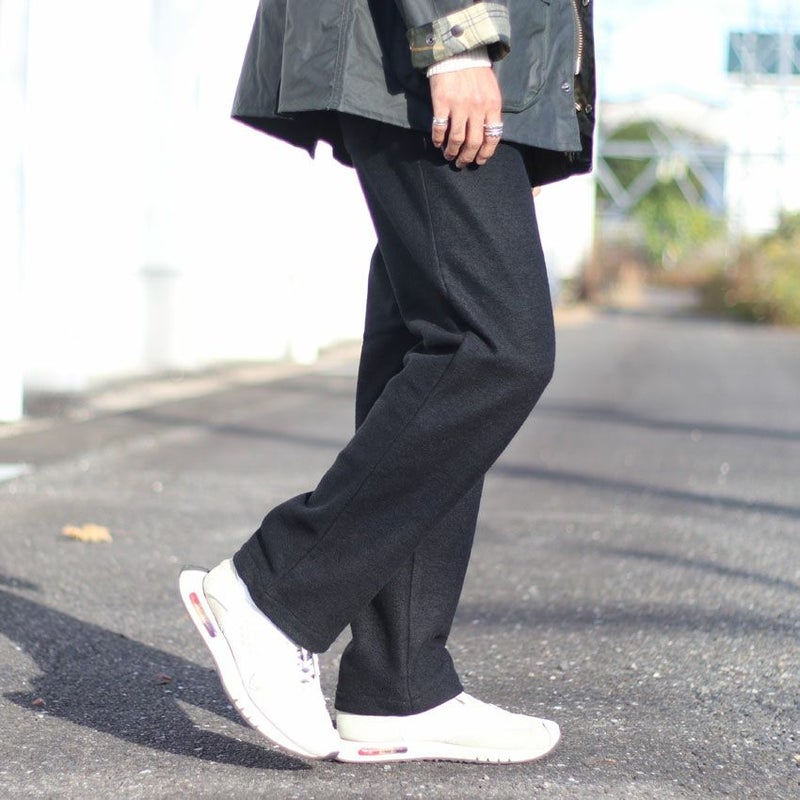 見た目にも暖かなウール、モコモコとした表情がありながらも厚すぎず、着膨れしにくくゆったりとしたテーパードシルエットとなります。