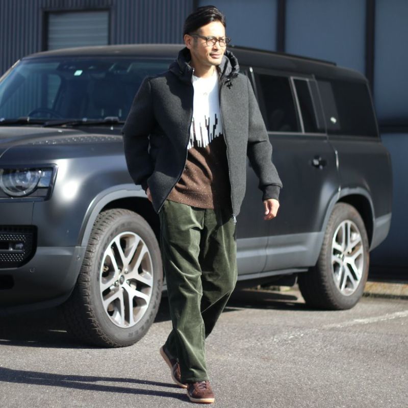 デニムやスラックスなど、幅広いボトムと相性良く着まわせる万能アウターです。