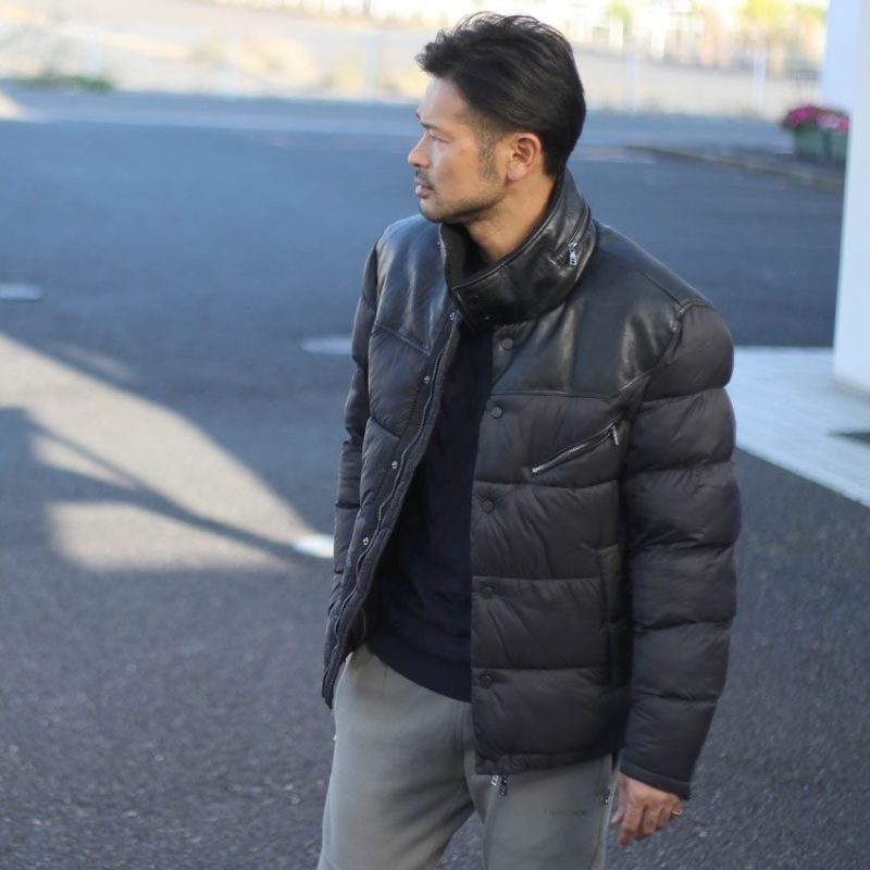 上品なレザーとナイロン、どちらも程よい光沢感をみせ、大人らしいラグジュアリーな側面を見せてくれる1着です。