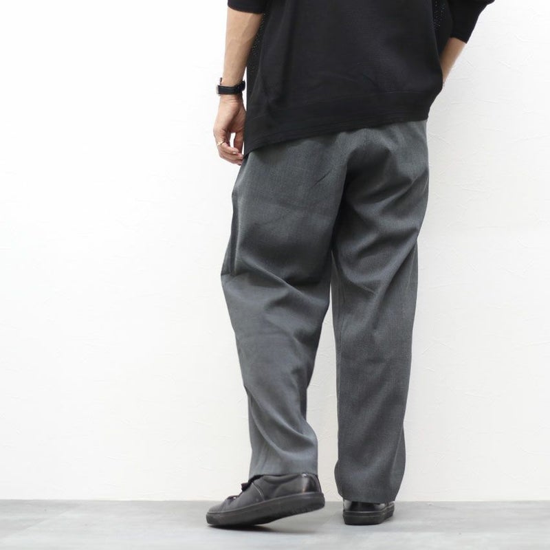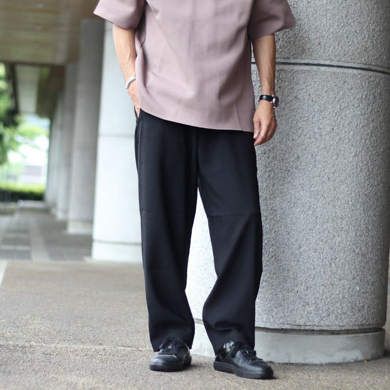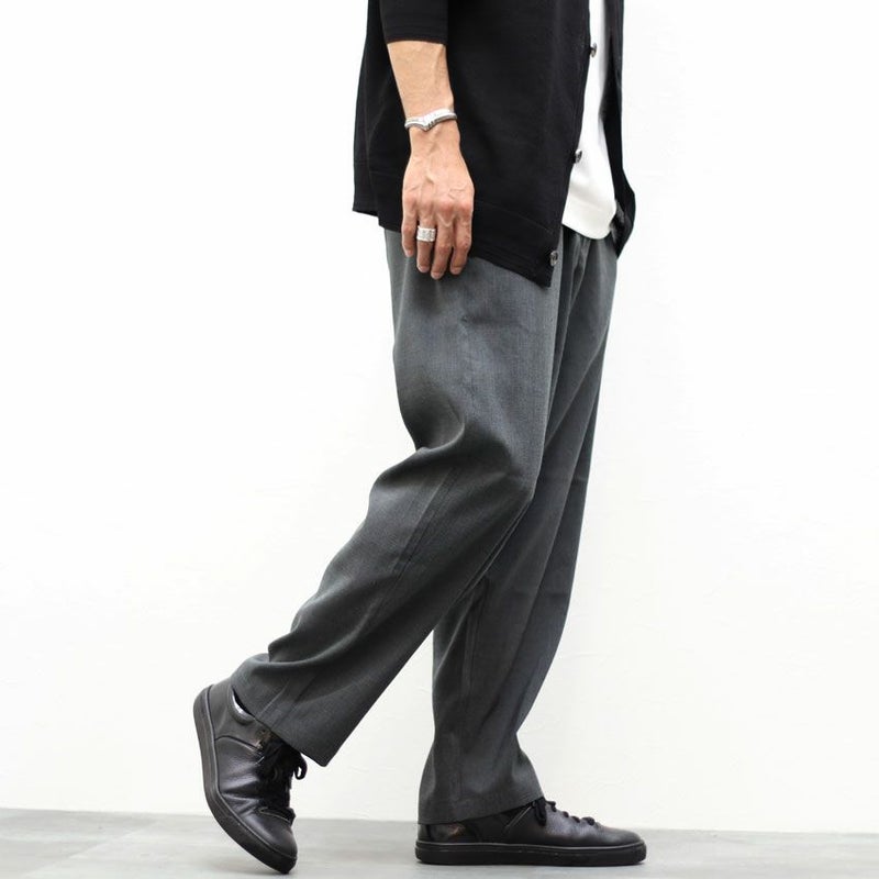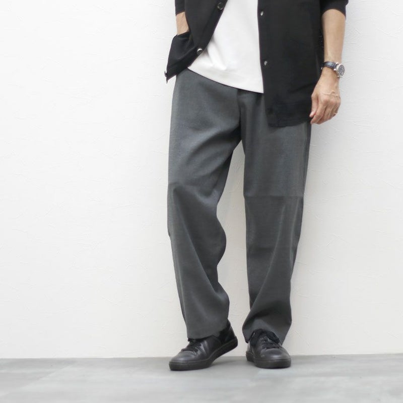 リネンライクな風合いの合繊素材を使用したワイドイージーパンツ。