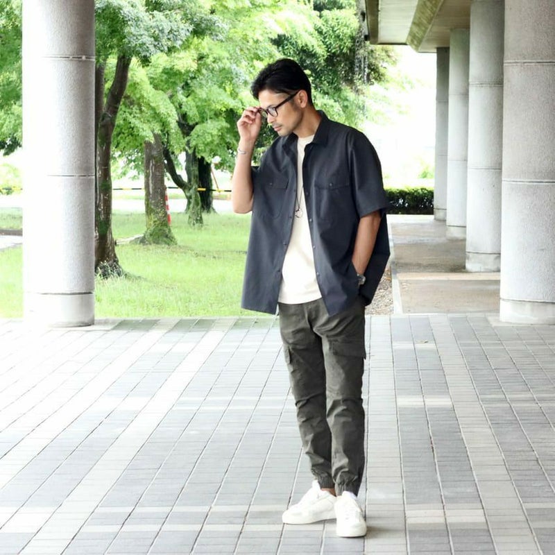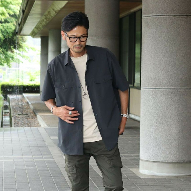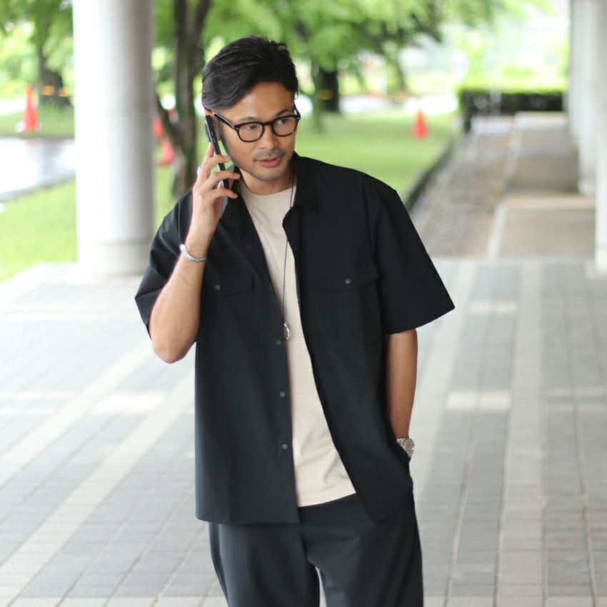 機能性の高い”クールドッツ”生地を使用した半袖シャツ。