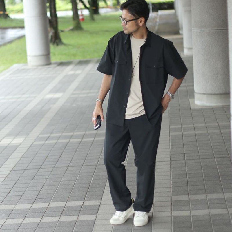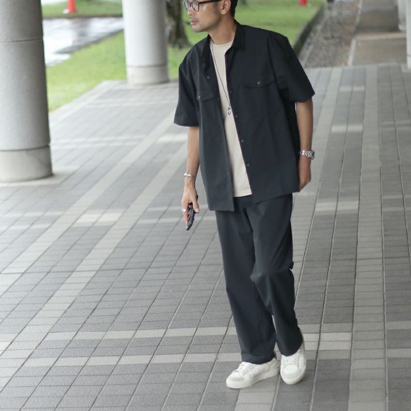 先端のテキスタイルメーカーとして世界的にも名高い「小松マテーレ」が開発した“環境配慮型クールストレッチ”の生地で、通気性・撥水性・吸水性・速乾性・ストレッチ性など、複合的な機能性を備えており、真夏のアクティブなシーンにぴったりの素材感です。