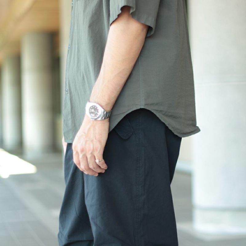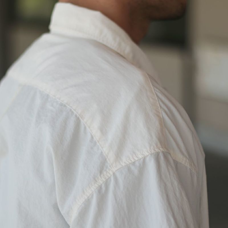 生地を製品染めすることでムラ感と生地に表情が生れ、シンプルなシャツでもこなれ感が出ます。