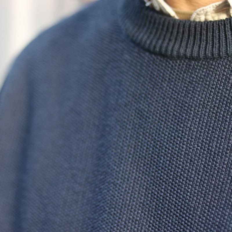 型くずれしにくい立体的な編地で、コットン糸を使用しているため季節問わず着れる1着です。