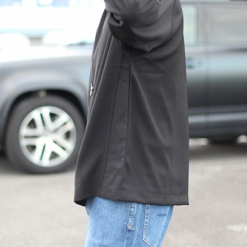 両サイドに、脇下から裾に向かって同色布帛で切り替えにしており、どの角度から見ても様になります。