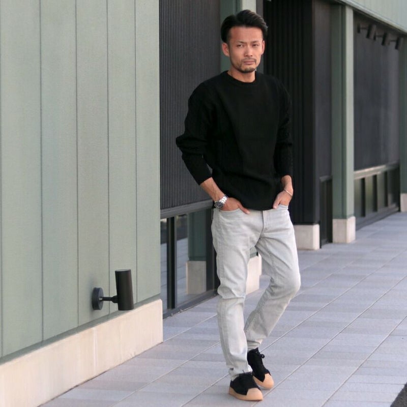 デニムやジョガーパンツなど、カジュアルなボトムはもちろん、スラックスやウールパンツなど大人めなボトムとも相性バツグン。