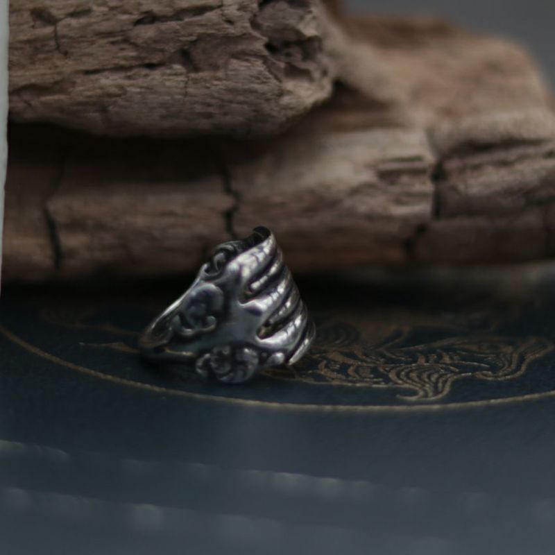 3本歯のアンティークフォークを2本組み合わせて作り上げたリング。