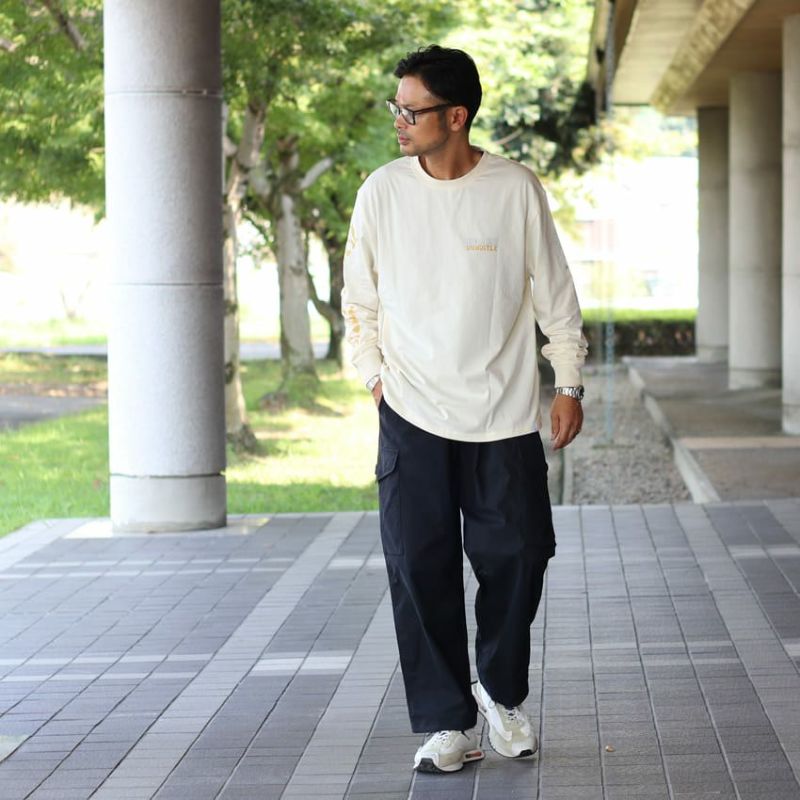ワイドパンツや、ミリタリーなパンツと合わせると今っぽい着こなしになるのでオススメです。