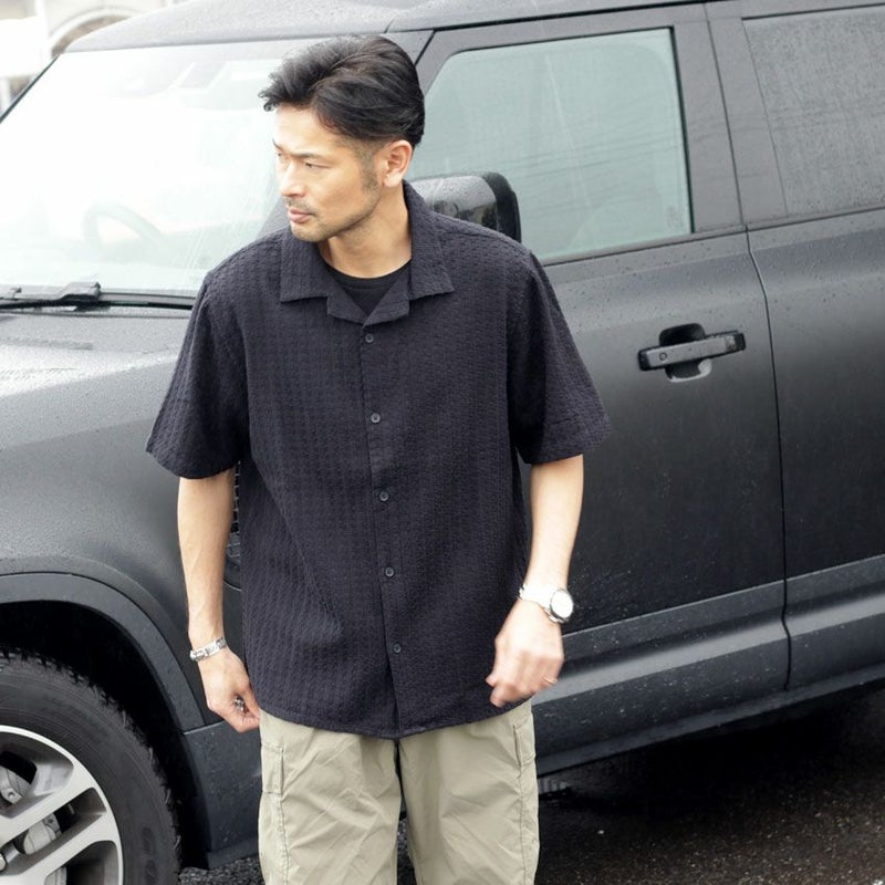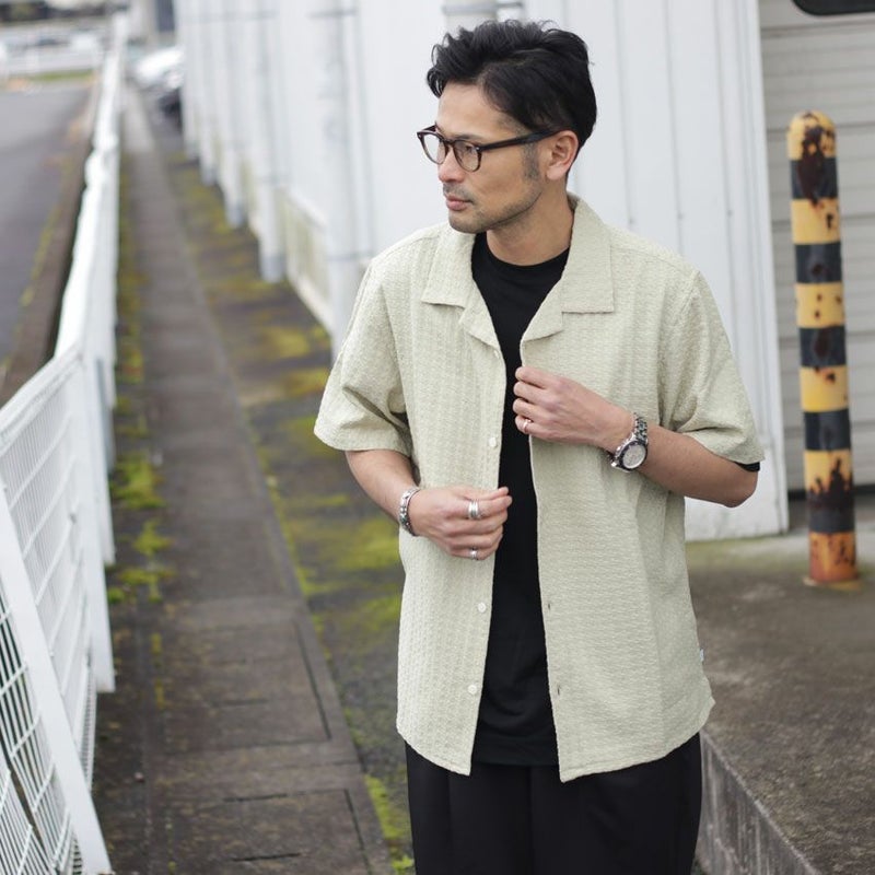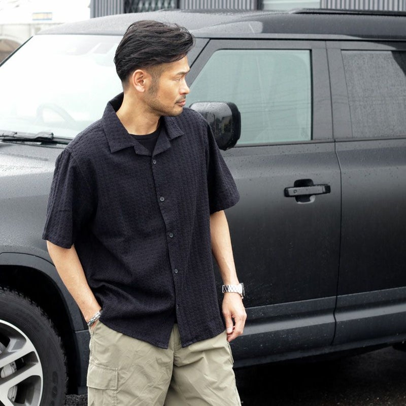 インポートブランドらしい特殊なジャガード柄はシンプルなデザインでも大人らしい個性の出し方ができ、品の良いシャツコーデが可能です。
