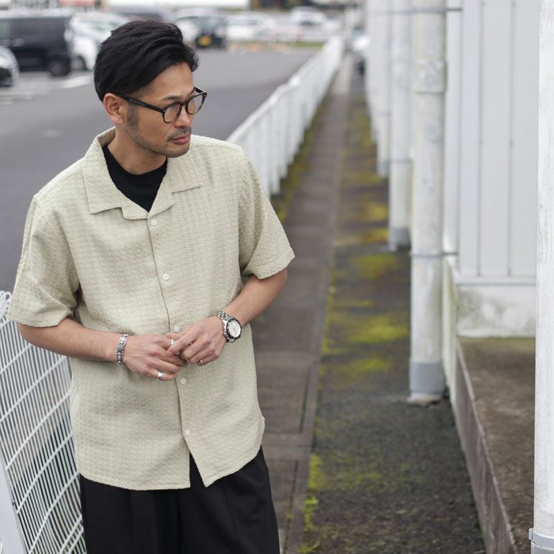 wax london/ワックスロンドン ディドコットシャツ“TEXTURE WAVE STRIPE” SS24-SSS-DID-BDQ 半袖シャツ お洒落 メンズ リゾート ジャガード